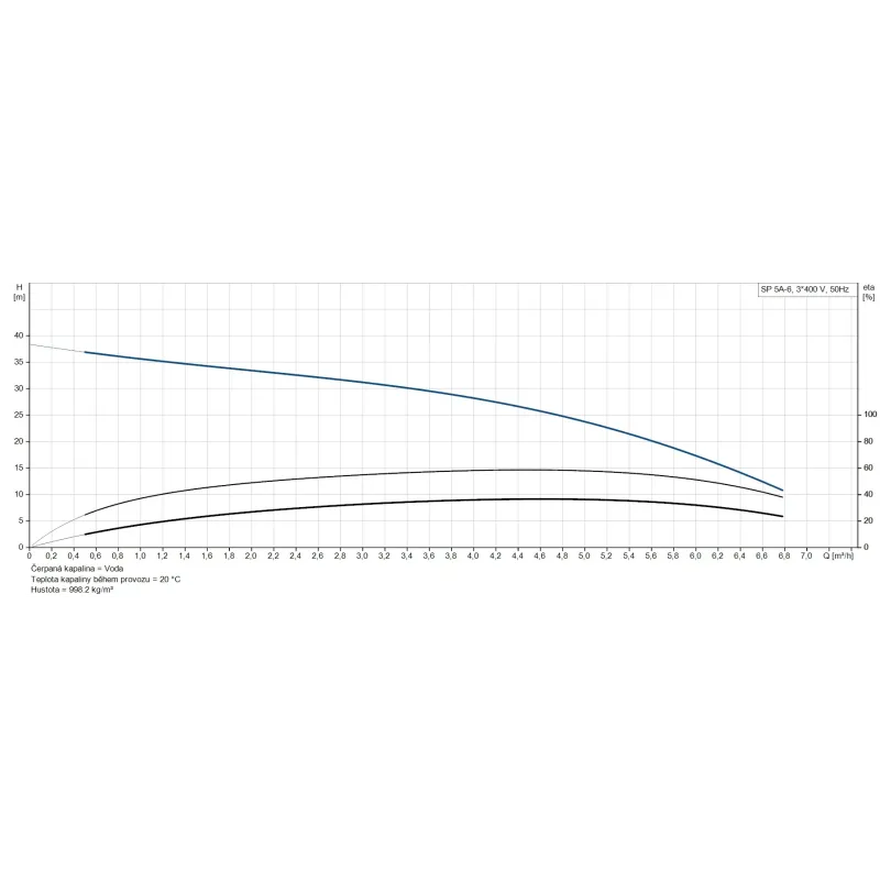 Upozorňujeme, že diagramy neodrážejí ztrátu účinnosti způsobenou ucpáním sedimentem nebo usazeninami.