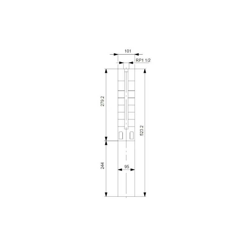 Ponorné čerpadlo do vrtu, vhodné k čerpání čisté vody. Může být instalováno ve svislé nebo ve vodorovné poloze. Všechny ocelové díly jsou vyrobeny z korozivzdorné oceli, EN 1.4301 (AISI 304), která zaručuje vysokou odolnost proti korozi. Toto čerpadlo je schváleno pro pitnou vodu. Čerpadlo je vybaveno motorem 0.55 kW MS402 s pískovým krytem, jazýčkovým těsněním, vodou mazanými kluznými ložisky a membránou pro kompenzaci objemu. Motor je zapouzdřený motor ponorného typu, který nabízí dobrou mechanickou stabilitu a vysokou účinnost. Je vhodný pro teploty až do 40 °C. Motor není vybaven teplotním snímačem. Pokud je vyžadováno monitorování teploty, je možné namontovat snímač Pt1000. Motor je určen k přímému on-line spouštění (DOL).