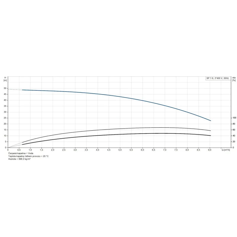 Upozorňujeme, že diagramy neodrážejí ztrátu účinnosti způsobenou ucpáním sedimentem nebo usazeninami.
