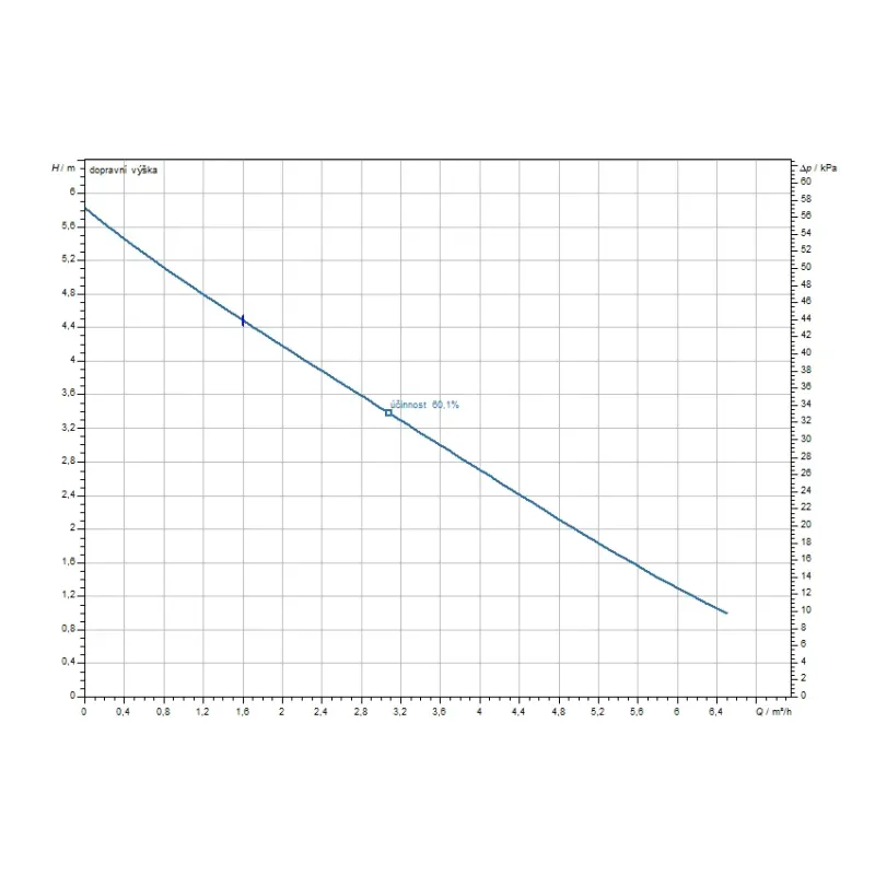 - 1× přípojka výtlaku 32 mm (DN 32), se zpětným ventilem, provedena vodorovně směrem vpravo, z výroby otevřená.