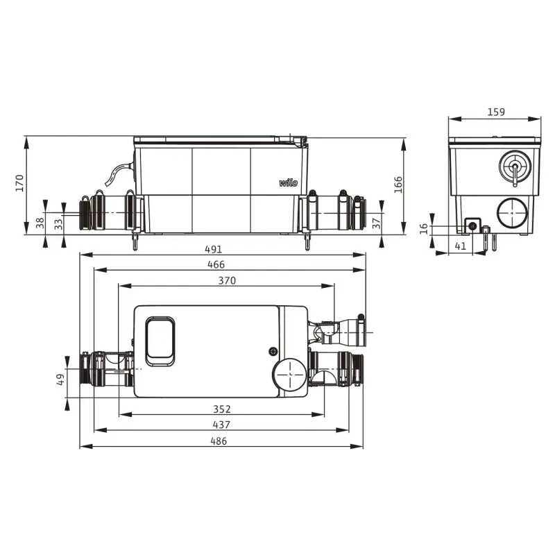Kompaktní, plně zaplavitelná přečerpávací stanice s ponorným čerpadlem, připravena k zapojení. Měření hladiny probíhá pomocí svislého plovákového spínače. Odvzdušnění je integrováno do krytu a je opatřeno filtrem s aktivním uhlím.