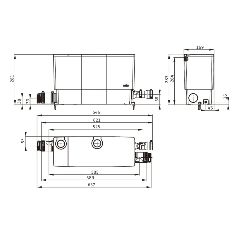 Kompaktní přečerpávací stanice připravená k zapojení s kontaktem poplachu pro odvodnění umyvadel, sprch, van a kondenzačních kotlů.