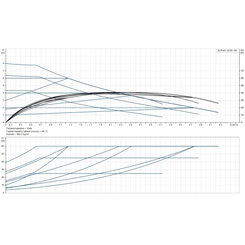 Čerpadlo ALPHA1 GO je vybaveno inteligentním řízením a nabízí tři řídicí režimy: konstantní tlak, proporcionální tlak a konstantní křivku. Každý režim je možné nastavit na tři rychlosti.