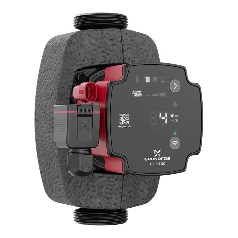 Čerpadlo ALPHA2 GO je vysoce účinné oběhové čerpadlo určené pro topné a klimatizační soustavy. Připojte čerpadlo k aplikaci Grundfos GO pomocí vestavěné technologie Bluetooth a získejte průvodce nastavením a další funkce.