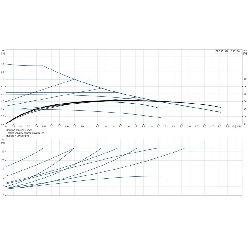 Čerpadlo ALPHA1 je vybaveno inteligentním řízením a nabízí tři řídicí režimy: konstantní tlak, proporcionální tlak a konstantní křivku. Každý režim je možné nastavit na tři rychlosti.