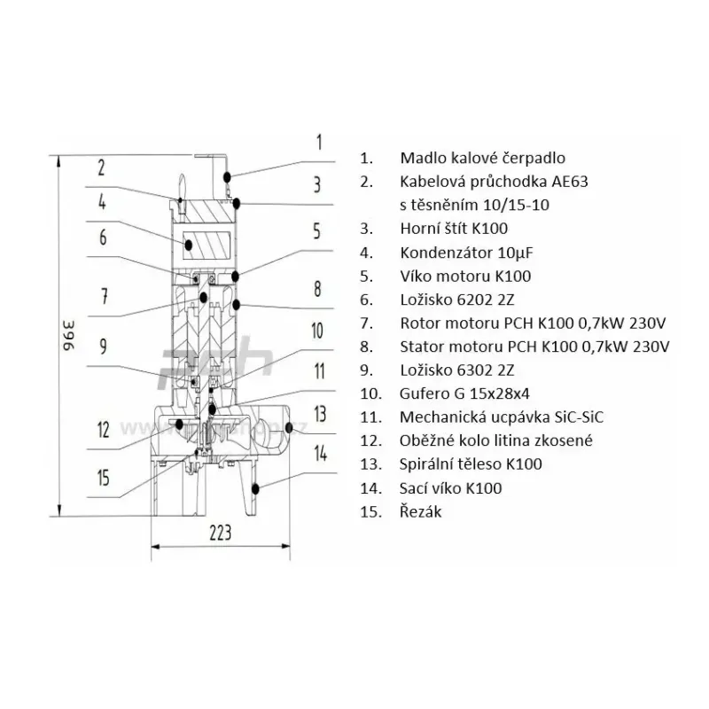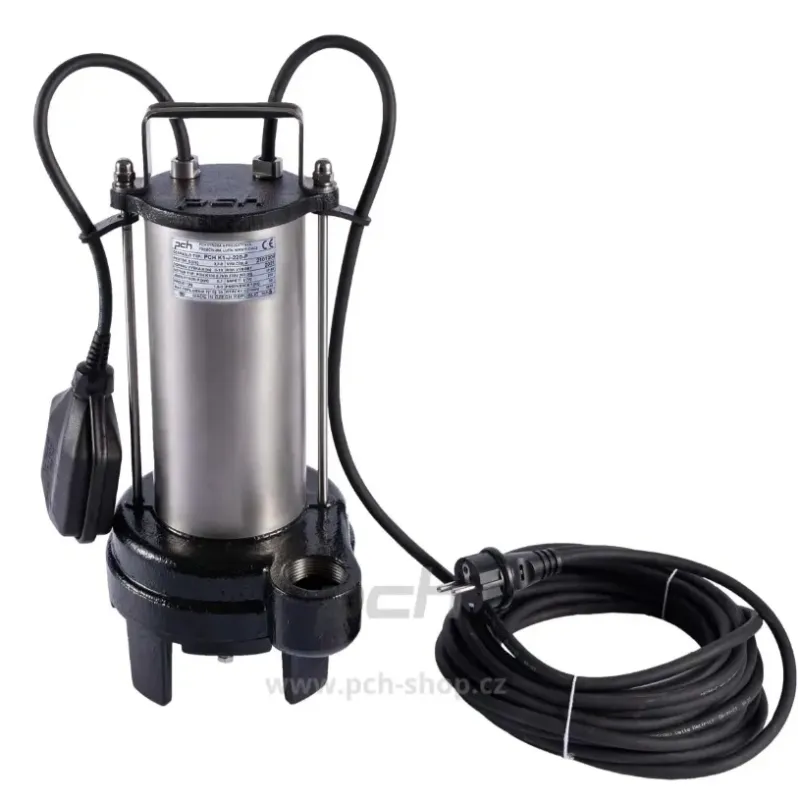 - Ponorné kalové čerpadlo PCH K1-J-220-P vyniká vysokým průtokem a dosaženou účinností, vybaveno plovákem