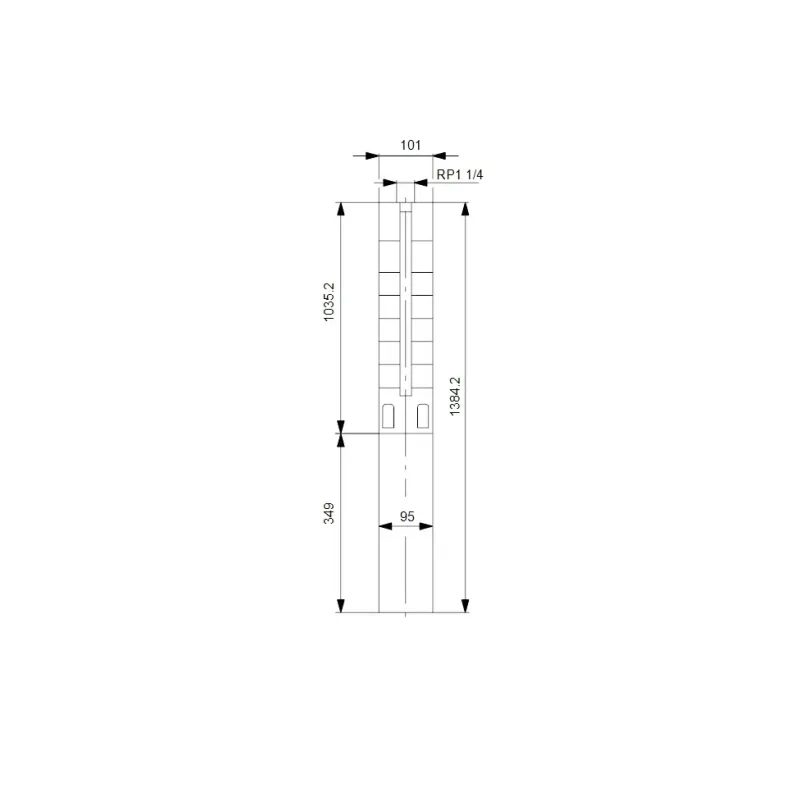 Ponorné čerpadlo do vrtu, vhodné k čerpání čisté vody. Může být instalováno ve svislé nebo ve vodorovné poloze. Všechny ocelové díly jsou vyrobeny z korozivzdorné oceli, EN 1.4301 (AISI 304), která zaručuje vysokou odolnost proti korozi. Toto čerpadlo je schváleno pro pitnou vodu. Čerpadlo je vybaveno motorem 0.55 kW MS402 s pískovým krytem, jazýčkovým těsněním, vodou mazanými kluznými ložisky a membránou pro kompenzaci objemu. Motor je zapouzdřený motor ponorného typu, který nabízí dobrou mechanickou stabilitu a vysokou účinnost. Je vhodný pro teploty až do 40 °C. Motor není vybaven teplotním snímačem. Pokud je vyžadováno monitorování teploty, je možné namontovat snímač Pt1000. Motor je určen k přímému on-line spouštění (DOL).