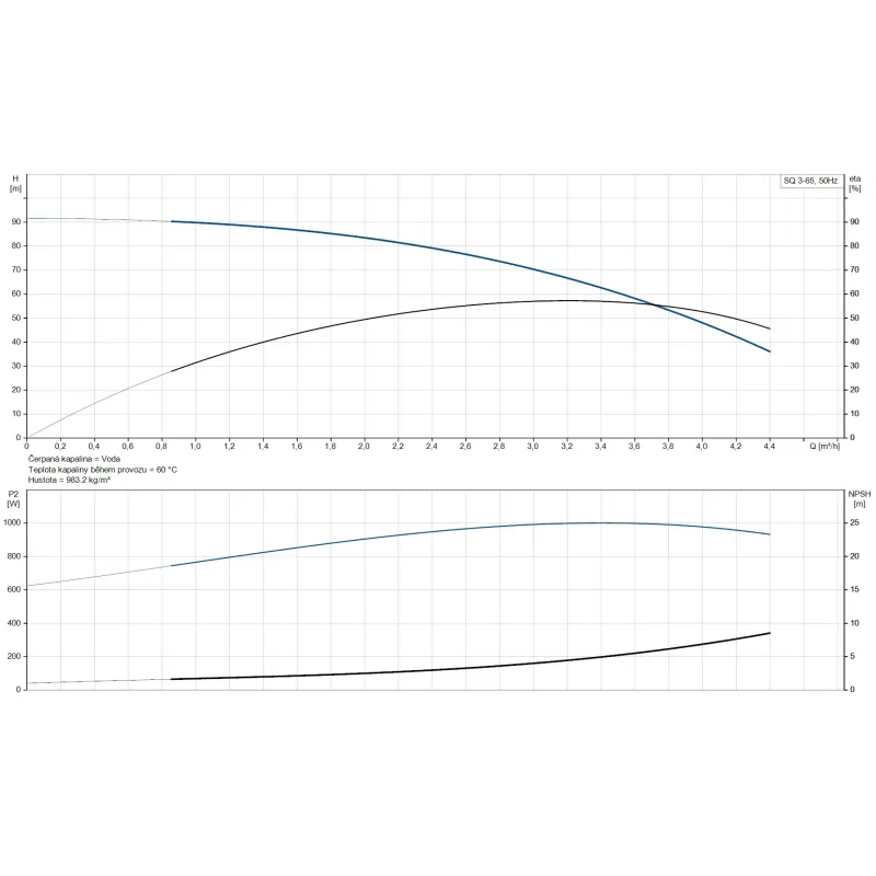Výkonné ponorné čerpadlo SQ 3-65 s jmenovitým průtokem 3 m³/h a dopravní výškou 70 m zajišťuje spolehlivé čerpání čisté vody. Díky jednofázovému motoru s permanentním magnetem dosahuje optimální účinnosti v širokém provozním rozsahu a nabízí komplexní ochranu proti nepříznivým provozním stavům.