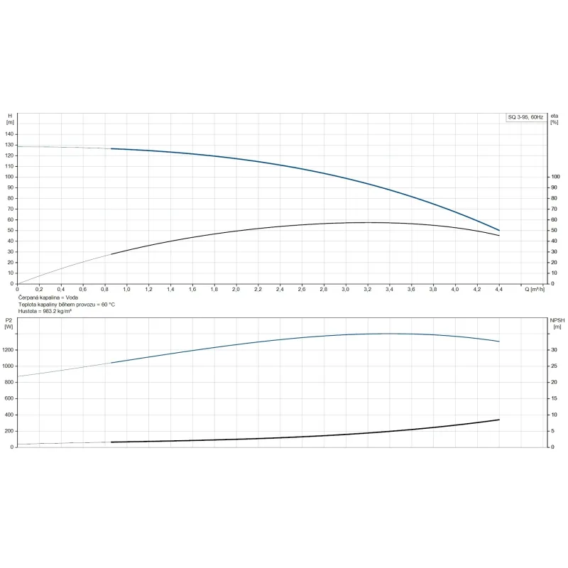 - Vysoký výkon s jmenovitým průtokem 3 m³/h a dopravní výškou 98 m (max. 128 m)