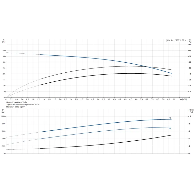 Kompaktní horizontální vícestupňové odstředivé čerpadlo Grundfos CM 5-4 vyrobené z vysoce kvalitní korozivzdorné oceli. Díky čtyřem oběžným kolům dosahuje optimálního výkonu s jmenovitým průtokem 4,7 m³/h a dopravní výškou 30,69 m. Certifikováno pro použití s pitnou vodou (WRAS, ACS, NSF61, UBA).