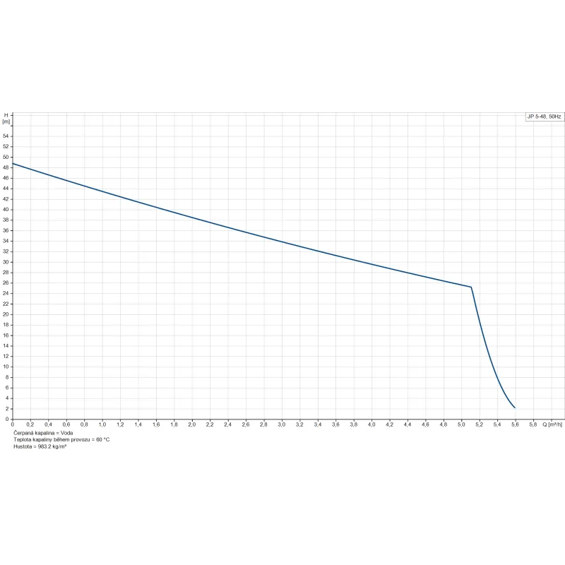 - Vysoký výkon s průtokem 5 m³/h a dopravní výškou až 49,5 m