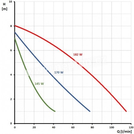 | Kód | Název produktu | Výrobce / distributor | Hmotnost | Připojení | Max. dopravní výška | Maximální průtok | Stavební délka | Příkon při 1/2/3. stupni | Cena |