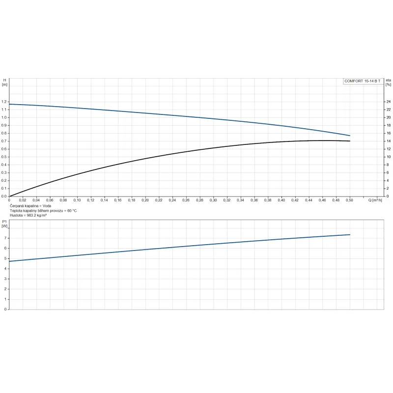 - Jmenovitý průtok: 0,45 m³/h