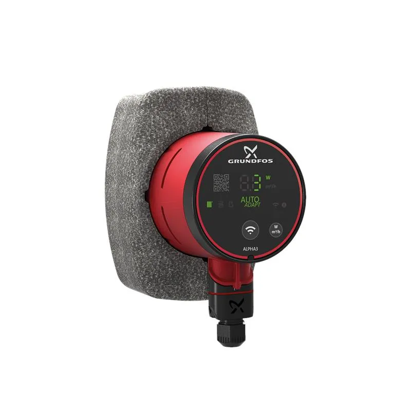 ALPHA3 je vysoce účinné oběhové čerpadlo se zapouzdřeným rotorem, které přináší revoluci v ovládání topných systémů díky vestavěnému Bluetooth rozhraní a mobilní aplikaci Grundfos GO Remote. S mimořádně nízkým indexem energetické účinnosti (EEI 0.18) zajišťuje významné úspory energie, zatímco inteligentní funkce AUTOADAPT nepřetržitě optimalizuje výkon podle aktuální potřeby tepla.