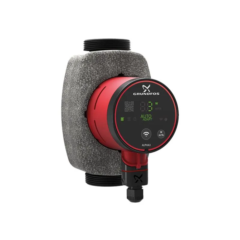 Vysoce účinné oběhové čerpadlo ALPHA3 s vestavěným Bluetooth rozhraním přináší revoluci v ovládání topných systémů. Díky indexu energetické účinnosti EEI 0,18 zajišťuje výrazné úspory energie, zatímco funkce AUTOADAPT nepřetržitě optimalizuje výkon podle aktuální potřeby tepla. Ovládání pomocí aplikace Grundfos GO Remote umožňuje snadné nastavení, monitoring i rychlé hydronické vyvážení celého systému.