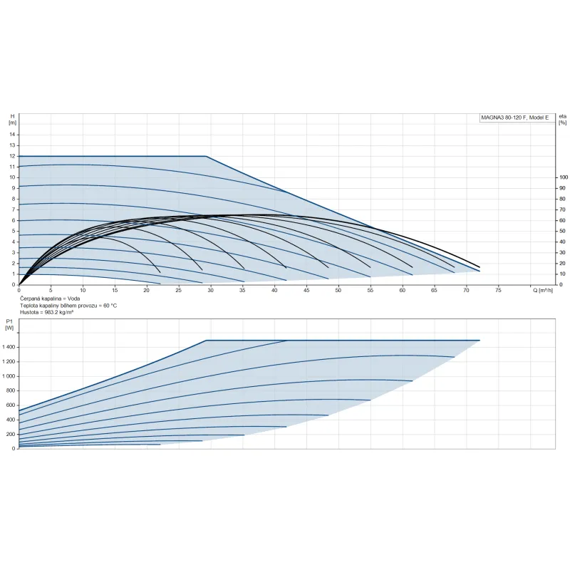 MAGNA3 80-120 F je vysoce účinné mokroběžné jednofázové oběhové čerpadlo s integrovaným frekvenčním měničem a funkcí AutoAdapt, která automaticky optimalizuje provozní bod podle aktuálních potřeb systému. Čerpadlo je vybaveno synchronním motorem s permanentním magnetem, který zajišťuje výrazně vyšší energetickou účinnost (EEI 0,17) oproti standardním čerpadlům.