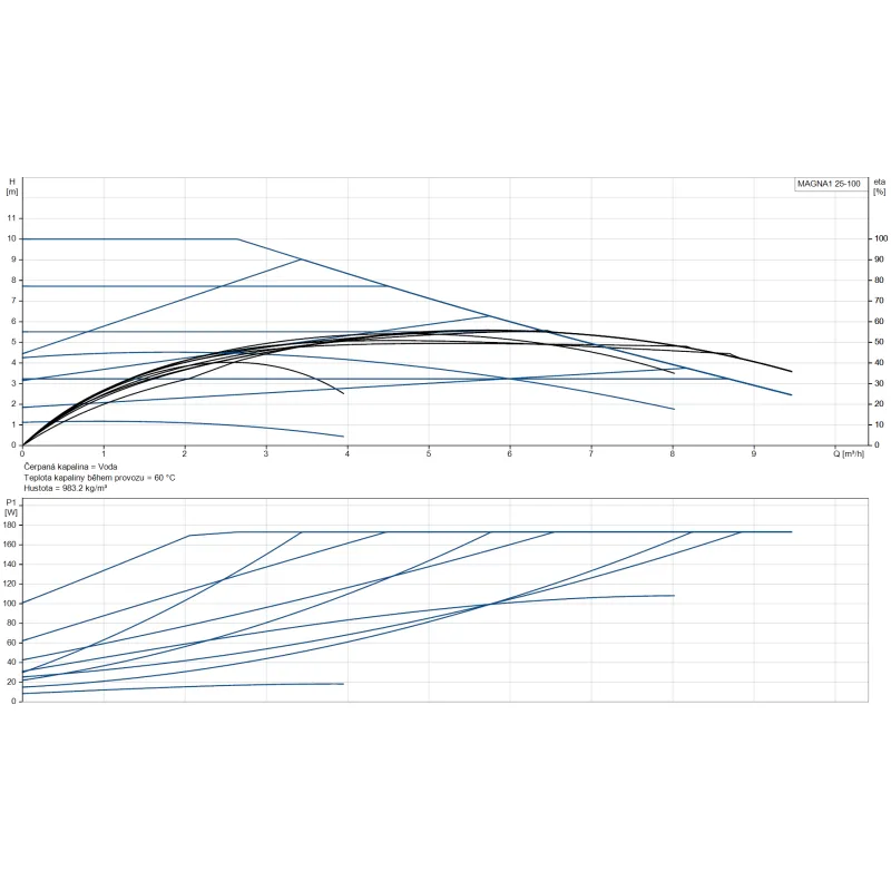 - Intuitivní nastavení - 9 řídících křivek dostupných jedním tlačítkem (3 křivky proporcionálního tlaku, 3 křivky konstantního tlaku, 3 pevné otáčkové stupně)