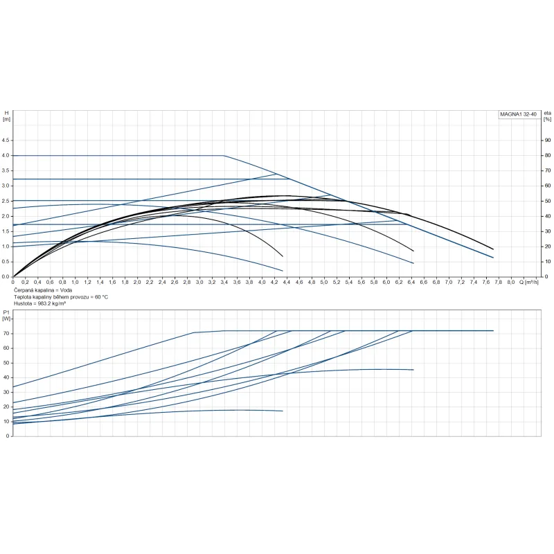Energeticky vysoce účinné mokroběžné oběhové čerpadlo MAGNA1 32-40 s jednoduchou obsluhou a nízkou spotřebou energie (EEI 0.20). Flexibilní řešení s 9 regulačními křivkami umožňuje optimalizaci provozu podle konkrétních požadavků systému a zajišťuje spolehlivý provoz jak pro vytápění, tak pro chlazení.
