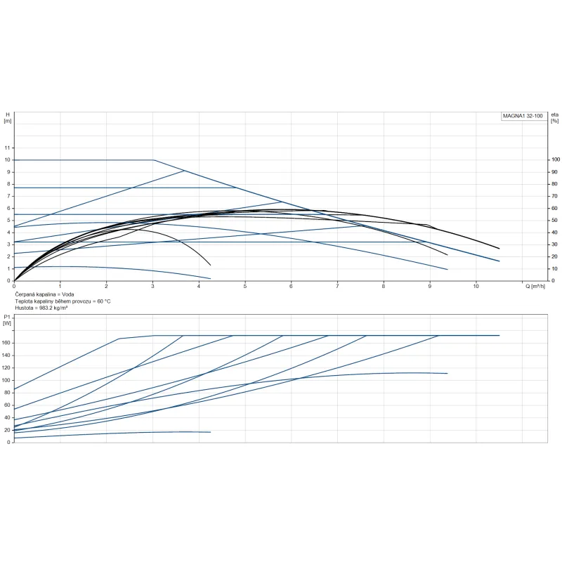 Vysoce účinné mokroběžné oběhové čerpadlo MAGNA1 32-100 představuje energeticky úsporné řešení (EEI 0.20) pro systémy vytápění a chlazení. Díky litinové konstrukci a maximální dopravní výšce 10 metrů poskytuje spolehlivý výkon s možností snadného nastavení pomocí jediného tlačítka podle 9 různých řídících křivek.