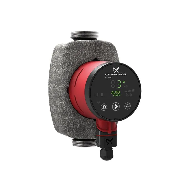 Vysoce účinné nerezové oběhové čerpadlo ALPHA2 25-80 N 180 s revoluční funkcí AUTOADAPT, která automaticky přizpůsobuje výkon aktuální potřebě tepla. S indexem energetické účinnosti (EEI) 0,18 zajišťuje výrazné úspory energie při zachování optimálního komfortu.