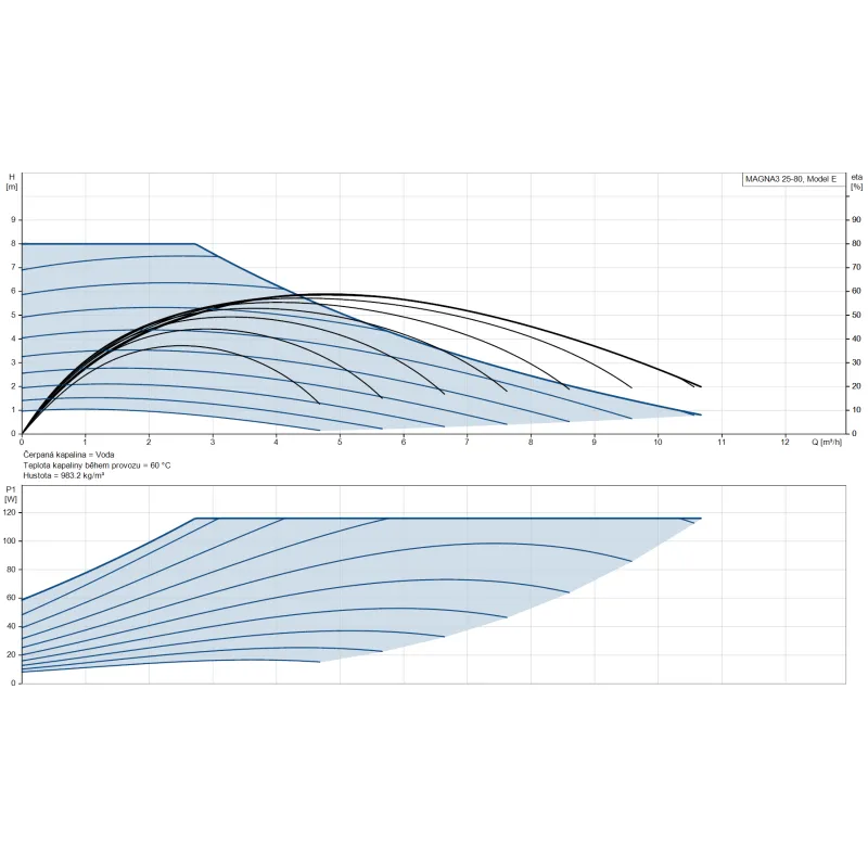 MAGNA3 25-80 je vysoce účinné mokroběžné čerpadlo s funkcí AutoAdapt, která automaticky analyzuje požadavky otopné soustavy a přizpůsobuje provoz bez nutnosti manuálního nastavení. Díky 4-pólovému synchronnímu motoru s permanentním magnetem dosahuje výjimečné energetické účinnosti (EEI 0.18) a zajišťuje optimální komfort při minimální spotřebě energie.
