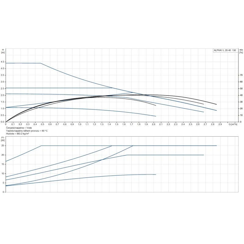 Vysoce účinné oběhové čerpadlo Grundfos ALPHA1 L 20-40 s moderní ECM technologií (motor s permanentními magnety) nabízí výjimečnou energetickou účinnost s indexem EEI 0.20. Čerpadlo disponuje třemi regulačními režimy pro optimální přizpůsobení různým topným systémům a díky mokroběžné konstrukci zajišťuje bezúdržbový provoz po celou dobu životnosti.