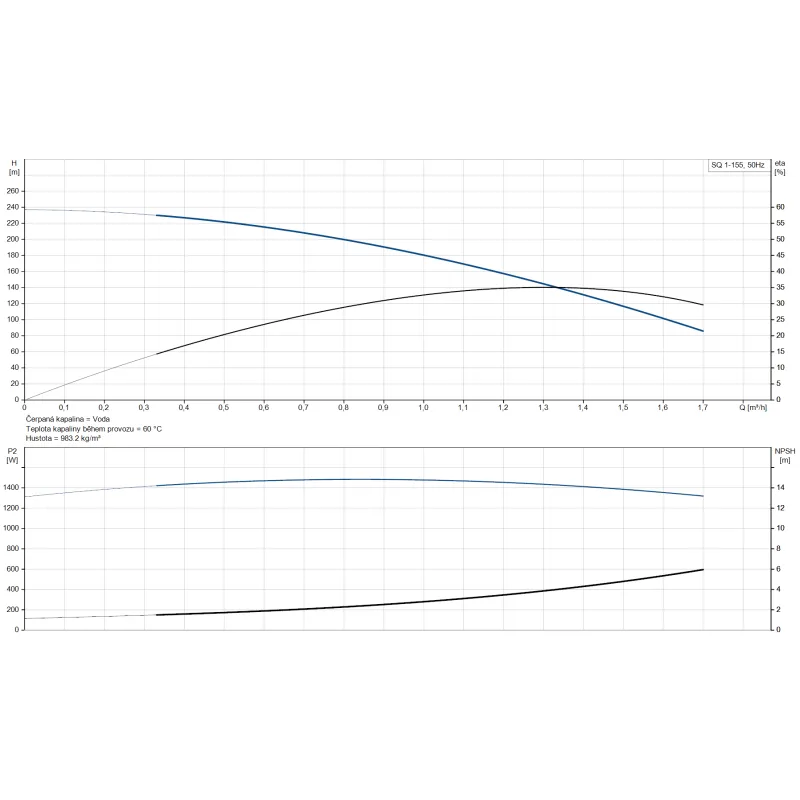- Vysoký výkon - jmenovitý průtok 1 m³/h při dopravní výšce 151 m