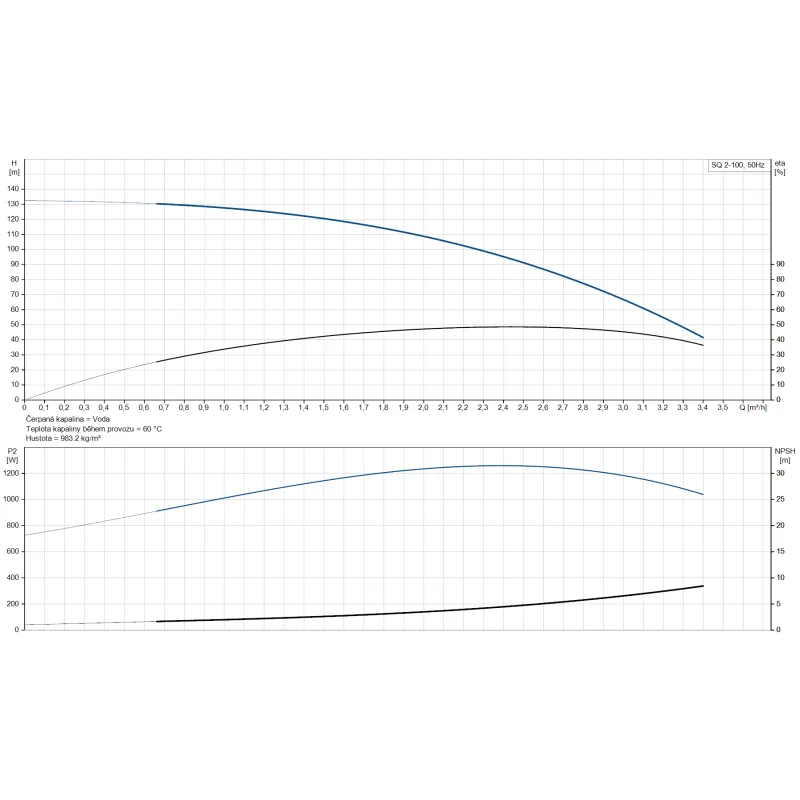 - Vysoký výkon - jmenovitý průtok 2 m³/h a dopravní výška až 108 m