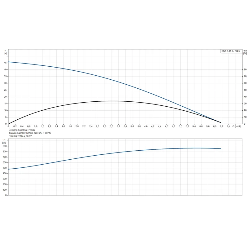- Vysoký výkon - jmenovitý průtok 3 m³/h a maximální dopravní výška 45 m