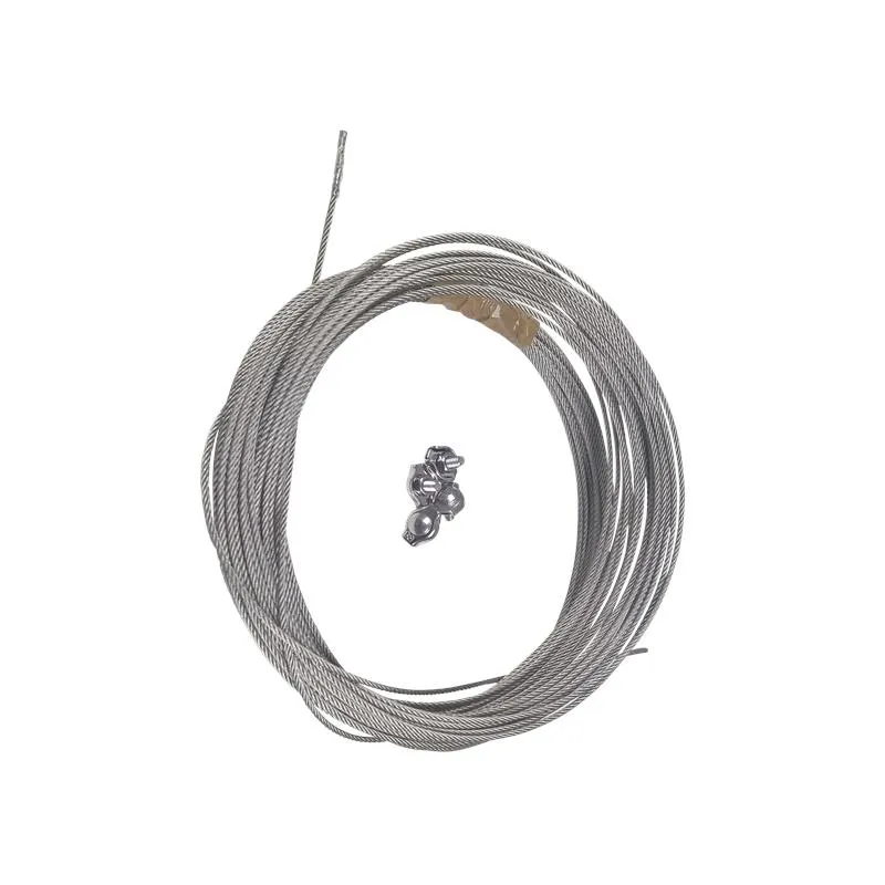Sestava ocelového lanka a uchycovacích spon pro zavěšení čerpadla do vrtu. Pro kompletní instalaci všech ponorných čerpadel (SQE, SQ, SP) na plastové potrubí doporučujeme použití ocelových závěsných lanek a spon.