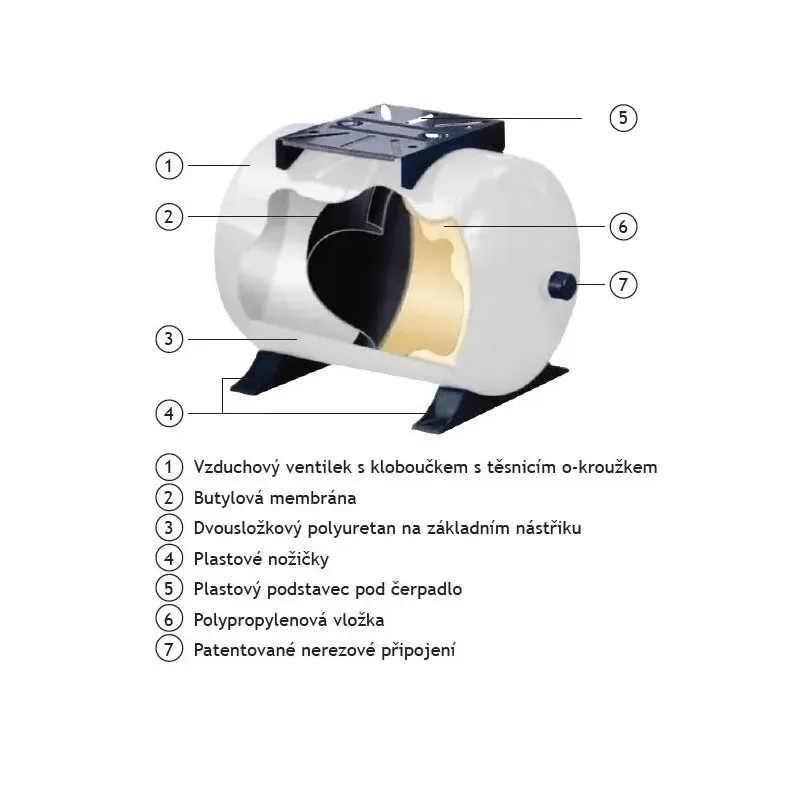 - Všechny vnitřní součásti nádoby včetně vzduchového ventilku jsou zaoblené z důvodu prevence před protržením membrány při extrémní zátěži.