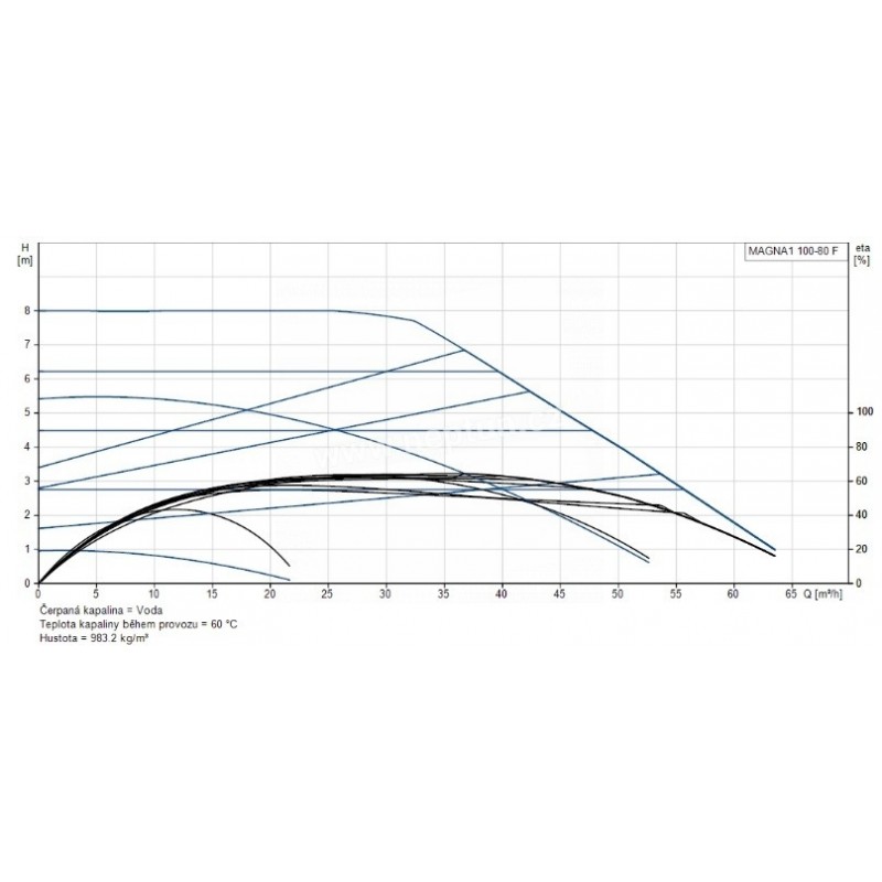 Vysoce energeticky účinné mokroběžné oběhové čerpadlo MAGNA1 100-80 F pro profesionální aplikace v komerčních budovách. Čerpadlo nabízí mimořádně snadné nastavení jedním tlačítkem dle 9 různých regulačních křivek a díky EEI indexu 0.19 zajišťuje významné energetické úspory při provozu.