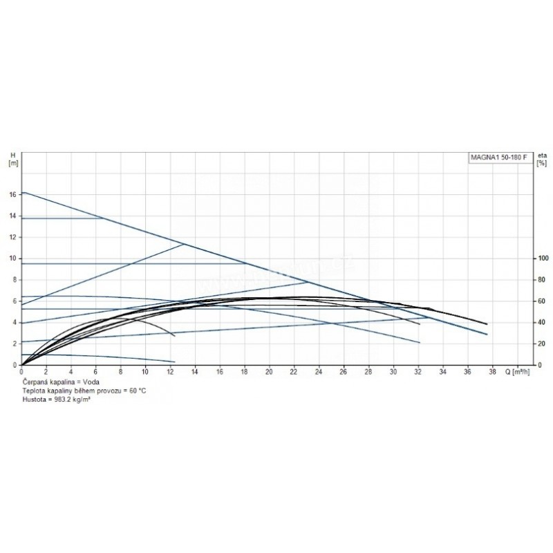 Mokroběžné oběhové čerpadlo MAGNA1 50-180 F představuje energeticky úsporné řešení pro čerpání topné i chladící vody s indexem energetické účinnosti EEI 0.20. Díky snadnému nastavení jedním tlačítkem a 9 regulačním křivkám získáte optimální výkon pro různé typy topných a chladicích systémů při maximální dopravní výšce 180 dm.